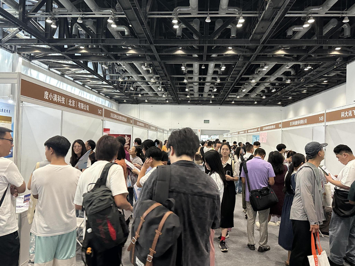 北京国家会议中心一期1号馆,展区大厅里人头攒动。150家企事业单位,携近万个优质岗位“开门纳才”,吸引了众多求职者。