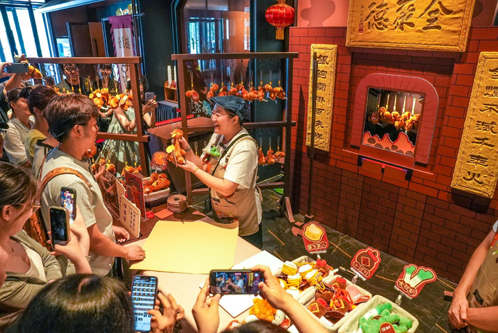 四合院内展示融合京绣、缂丝等非遗技艺的新中式服装;东方生活美学集合空间汇集陶瓷茶具、手工织物等匠人作品……今年新开业的中海大吉巷,可谓商场中的“顶流”。