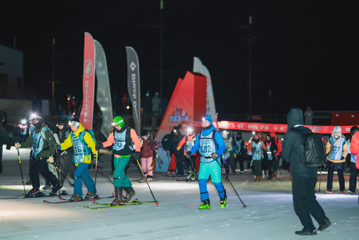 清晨6时,比赛正式开始。选手们有序出发,延雪道“逆向”攀登而上,头灯发出的光亮散布在尚未破晓的夜色中,宛如点点星光。本次比赛竞赛项目为滑雪登山中的“垂直竞速赛”,但海拔上升比竞技赛事的垂直竞速赛更大。选手们踩着带有专用固定器、贴有止滑带的雪板奋力前行,挑战极限。