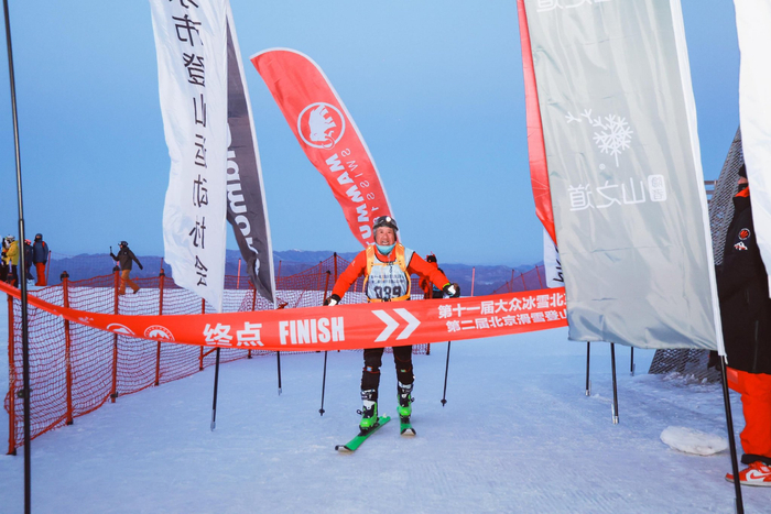 最终,多数选手在7时30分之前抵达了终点——位于小海坨山巅的“雪飞燕”广场。此时已晨曦微露,大伙儿顾不上严寒,聚集到观景平台。随着新年的太阳第一次“露头”,人群中发出阵阵欢呼,有人拨通了家人的视频电话,有人与身边的伙伴击掌、拥抱,有人高喊出新年愿望。“祝儿子、闺女考上理想的学校,身体健康,万事如意!爸爸妈妈爱你们!”绰号“大魔王”的滑雪登山资深玩家李铭以日出为背景,录下了祝福家人的视频。他说,作为北京人,自己此时心潮澎湃,“我连续参赛两年了,明年还会来!”
