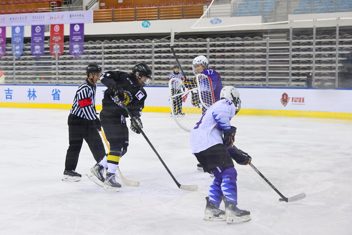 12月31日,由中国学生体育联合会主办,中国学生体育联合会大学冰上运动分会与吉林省学生体育协会联合执行的“犀旺杯”第6届全国大学生冰球联赛(总决赛)在吉林省吉林市冰上运动中心开赛。从清晨的小组循环赛到傍晚的跨年嘉年华,冰场上的少年们以速度诠释热爱,用拼搏书写青春,为现场观众呈现了一场兼具竞技魅力与狂欢氛围的冰雪盛宴。