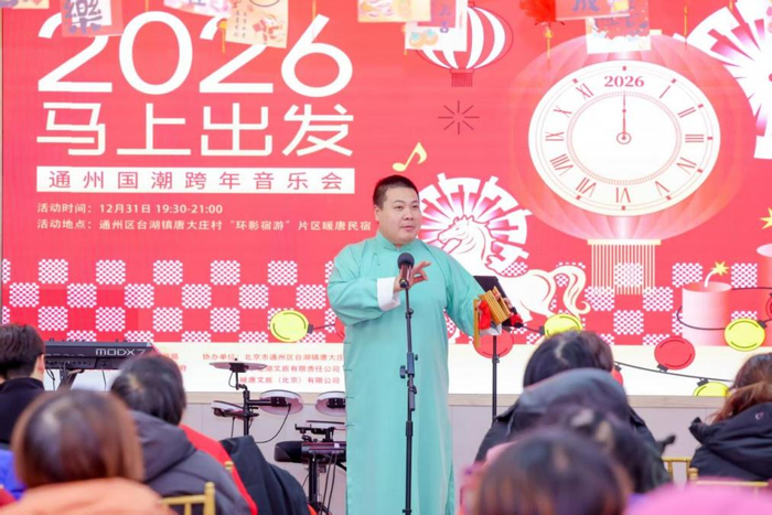 2025年12月31日晚,通州区台湖镇唐大庄村华灯初上。冬夜的寒意在激昂的鼓点与此起彼伏的欢声中逐渐消散,“2026马上出发”通州国潮跨年音乐会在唐大庄村“环影宿游”片区热闹上演。伴随着一曲曲熟悉而真挚的旋律,这场跨年专场为市民和游客送上新年祝福,也为贯穿全年、深入城市空间与基层一线的通州区群众文化大联欢系列活动,画下温暖而圆满的句点。