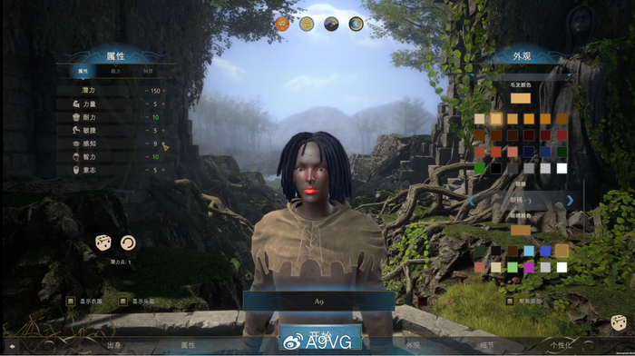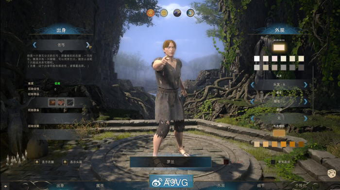 选择完出身可以选择种族,包括人类、精灵、矮人、灰兽人4种,不同的种族对应不同的属性,例如精灵的高攻速与低负重适合游击战术,而灰兽人的残血爆发机制则要求玩家精准把控战场节奏。属性面板可以在开局进行加点,内容包括力量、耐力、敏捷、感知、智力、意 志,能力方面有说服、议价、恐吓、偷窃等等。完成以上内容的选择和最后的捏脸细节,一个属于你的独一无二的人物就在自由地诞生了。值得一提的是,捏脸部分的细节不算很多,而且想捏出好看的人物比较困难,每次随机出来的人物都是古神级别的。