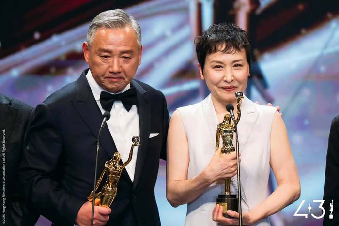 #金像奖获奖名单#第43届香港电影金像奖专业精神奖授予配音演员姜小亮和韩冬青,秦沛、姜大卫为他们颁奖。