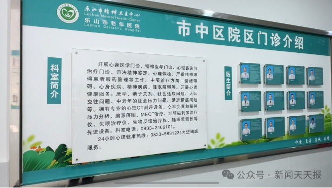 乐山市老年医院 位于中心城区王浩儿街635号,侧重于老年人精神健康领域,比如老年期常见的老年痴呆、抑郁症、焦虑症等方面的诊断与治疗,同时开设了综合内科诊疗服务。