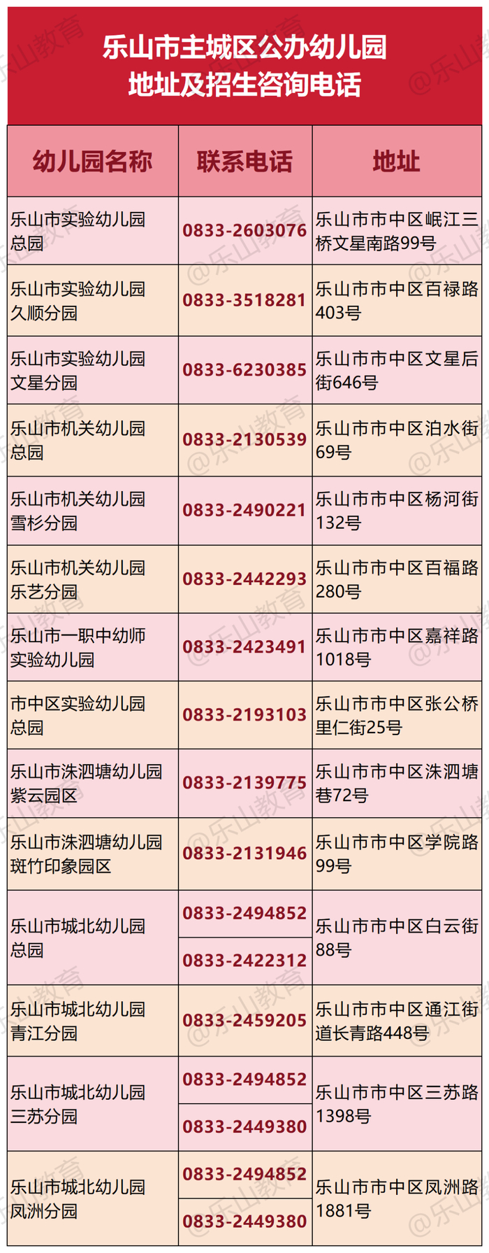2025年乐山市主城区有几所公办幼儿园在招生?