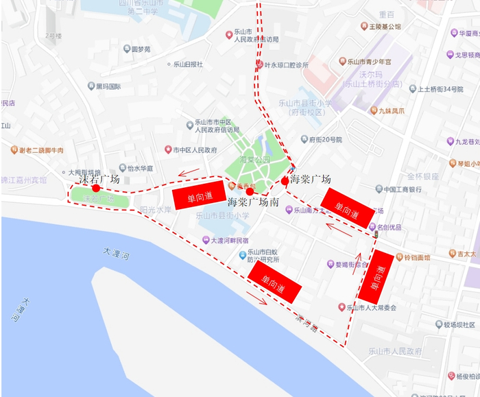 在海棠广场南乘坐16路前往叮咚街方向的市民请到海棠广场或沫若广场公交站乘坐。