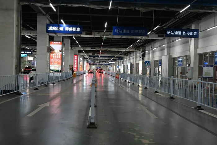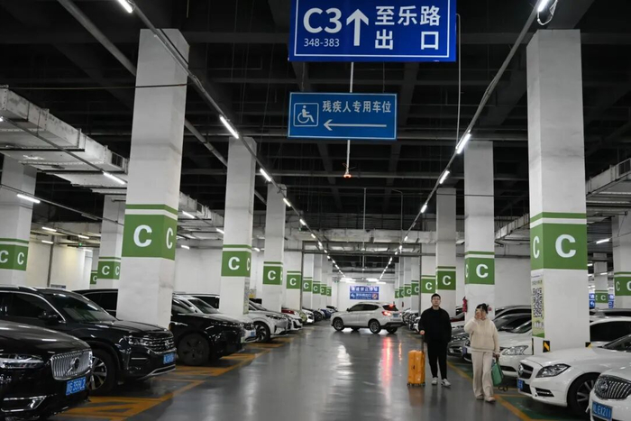 本次改造还注重优化通行流线,完善各类引导标识,增设隔离设施,合理划分接站与送站通道,设置循环通行路线,引导车辆有序流动。同时,为帮助车主返场时快速找到车辆,停车区实施了“分色+字母”标识系统,不同颜色与字母的墙柱让停车位置更直观、寻车更轻松。