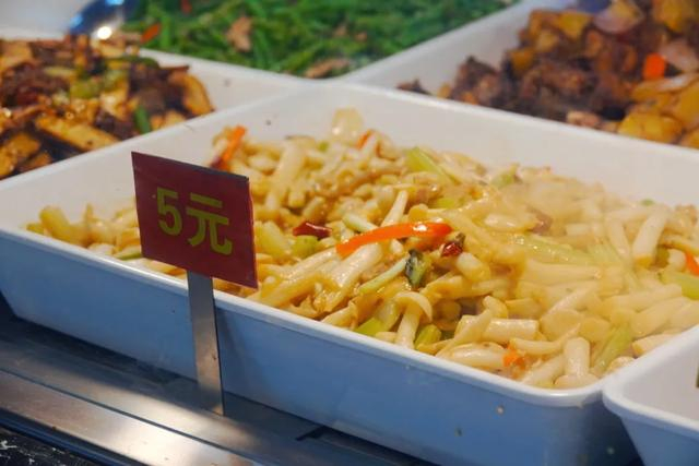 张经理表示,目前一楼的大众白案、一菜一价、经济营养套餐这三个档口主打平价菜,每个不同品类菜前都有清晰的价格标识,方便购买。其中一菜一价档口里面的爱心菜,菜价分别在1元至6元不等,其中1元、2元主要是时令蔬菜,这些菜品会根据时节定期更换,同时每天会不间断输送。