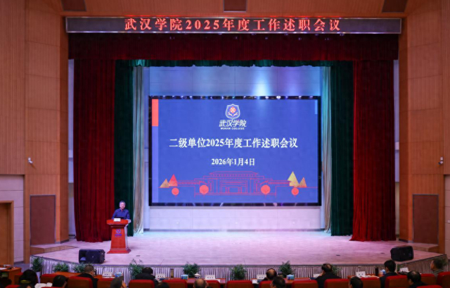 1月4日,武汉学院各二级单位2025年度工作述职会议在刘炽平报告厅举行,各教学单位、职能教辅部门依次登台亮出成绩单。全体校领导和中层干部与会。