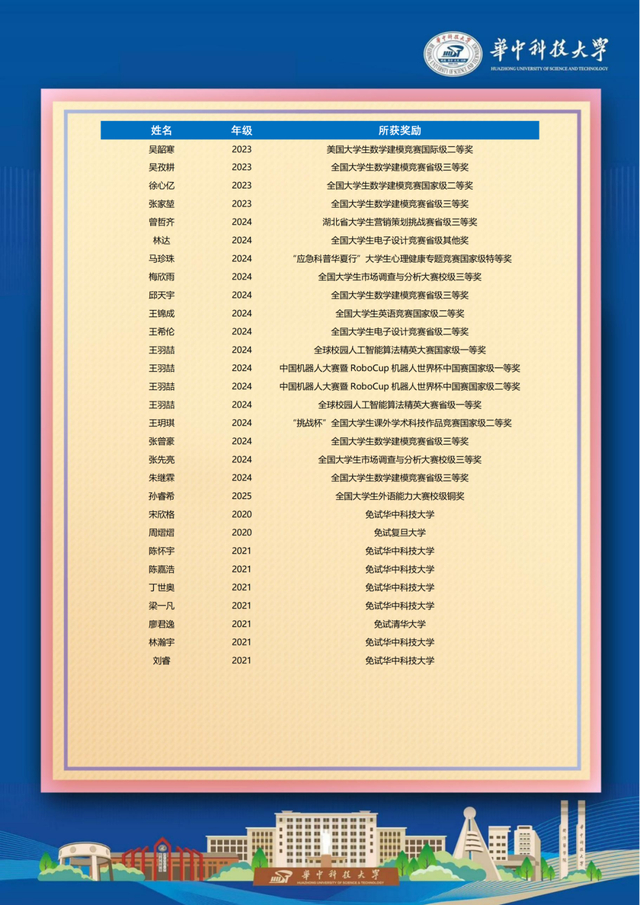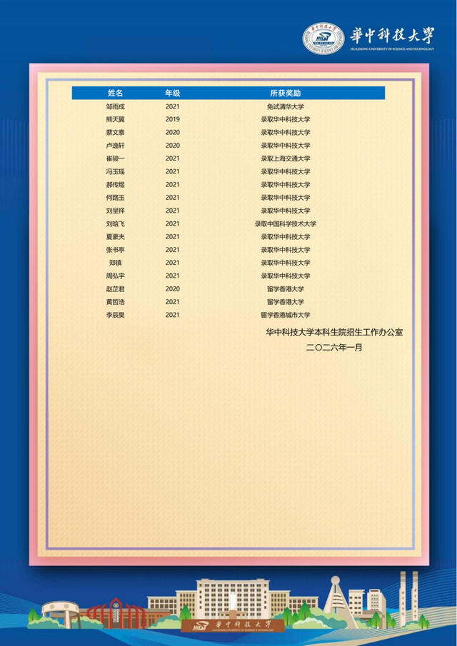 近日,华中科技大学传来喜报,对我校输送学子的优异表现给予肯定,向我校致以诚挚祝贺。这份认可离不开华中科技大学的悉心培育,也让我们为学子们的成长倍感欣慰。我校输送学子在2025年度表现亮眼,荣誉表彰、学科竞赛、升学深造多点开花,彰显非凡实力。