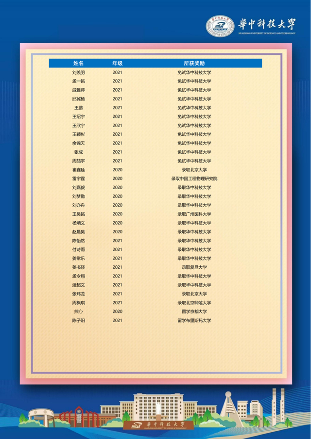 华中科技大学向我校发来喜报