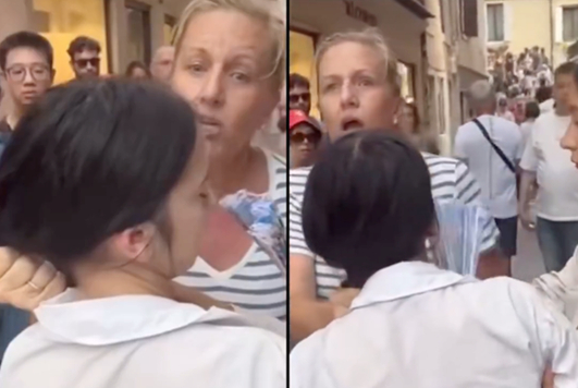 事情发生在威尼斯,一位美国游客发现自己的背包被拉开,然后通过启动苹果手机的寻找模式,找到了丢失的钱包。她追着那个潜在的小贼,直接抓着她的辫子不放,直到警察到现场。期间小贼也用金属水瓶砸了这名被盗的游客。之后这段影像在社交媒体上疯狂传播,比起关心那个年轻姑娘,大家更愿意同情勇敢自卫的游客。