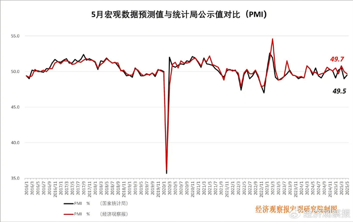 宏观数据显示,2025年5月CPI与上月持平,值为-0.1%;PPI从-2.7%下降至-3.3%;制造业PMI由49.0%上涨至49.5%;新增人民币贷款6200亿元,较上月增加3400亿元;M2增速降至7.9%。