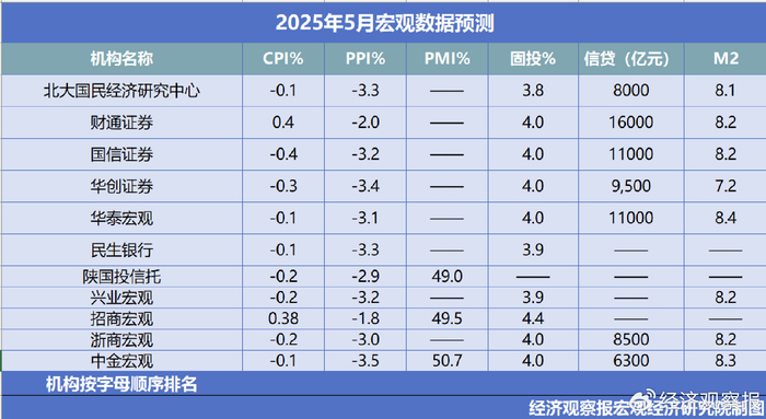 由《经济观察报》发起的“经济观察报月度观察”,每月发布一次。本次共有11家机构参与月度宏观数据预测。