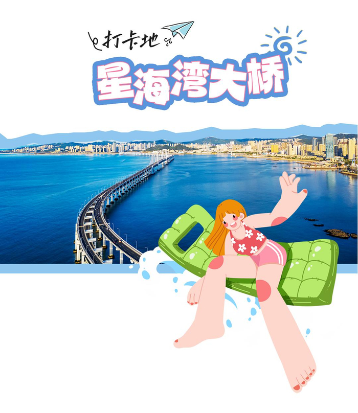 星海湾大桥是一座集城市风光和功能于一体的特别海上建筑,它的设计十分独特,桥梁设有专门的步行道,前来打卡的游客可以走在步行道上,穿梭在海风中,感受大海的波澜壮阔。