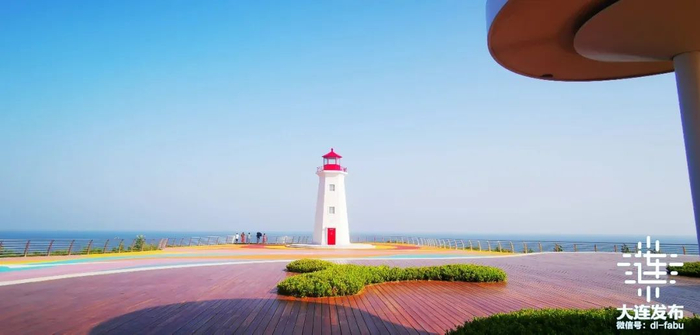 每一个季节的泊霞湾,都有专属的景致。春季的泊霞湾,告别冰封,精心设计的彩绘路面和海鸥图案变得格外活泼灵动。红白相间的灯塔矗立在海岸旁,色彩斑斓的层叠“海浪”,与山崖下的大海形成完美构图。