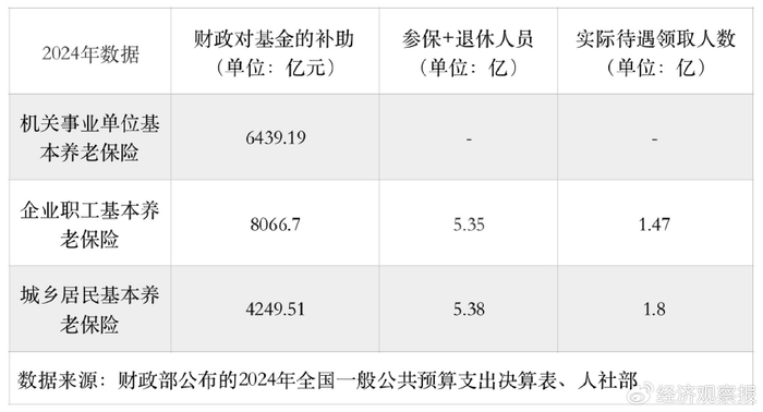 从财政补助力度来看,2024年农民养老金获得的财政补助,大幅度低于机关事业单位基本养老保险和企业职工基本养老保险。如果考虑到农民养老金制度的参保人数大于后两项制度,农民养老金人均每月获得的财政补助,与后两项制度的差距会更为显著。这一数据对比可能意味着,农民养老金的财政补助仍有一定上调空间。