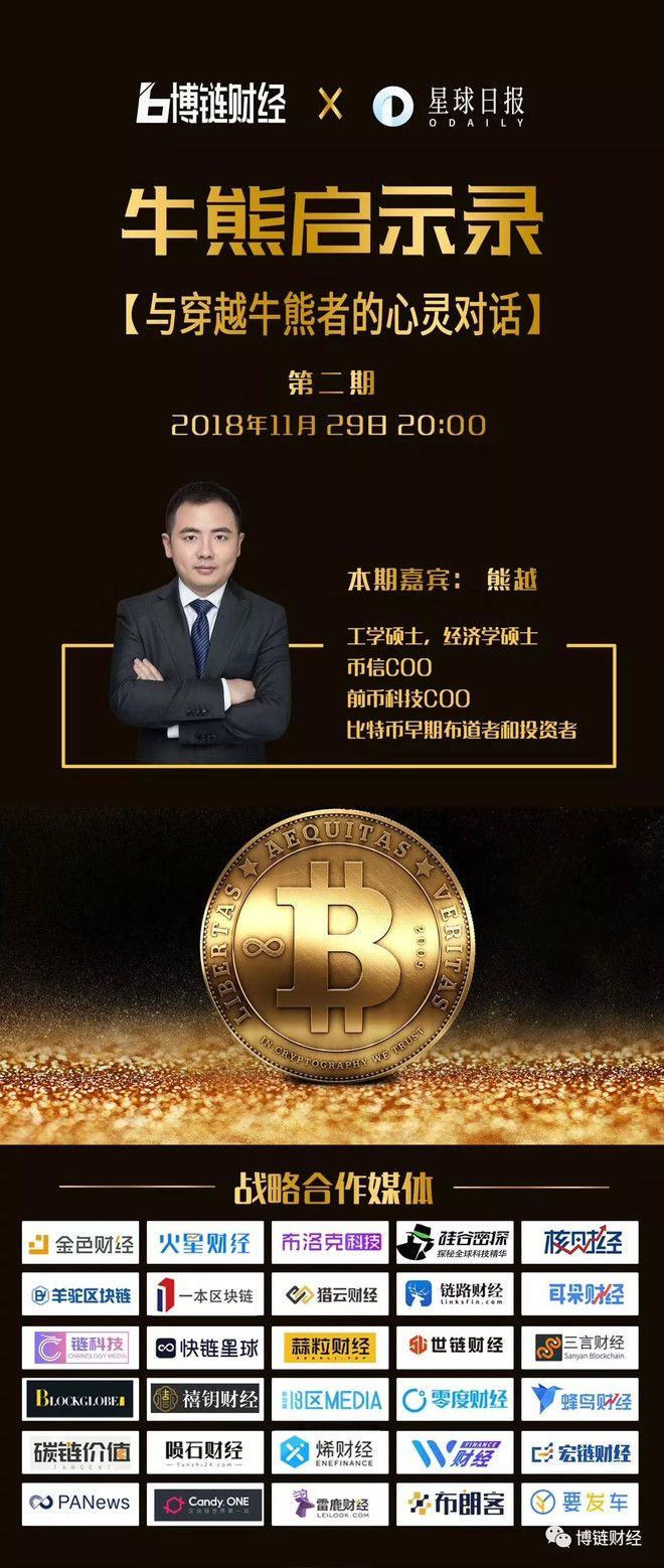 继10月推出高端视频访谈节目《直面大佬》之后,近日,博链财经又携手36氪独家战略合作媒体《Odaily|星球日报》推出深度在线互动访谈栏目——《牛熊启示录》,旨在通过与穿越牛熊者的心灵对话,一起“优雅”的度过币圈漫漫长熊。