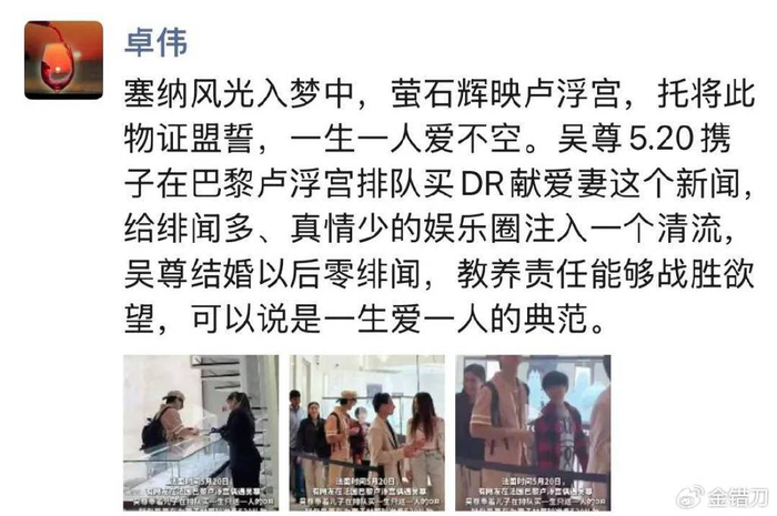 吴尊在巴黎因为DR出圈,粉丝们都在感叹他和妻子数十年如一日的感情,但更了解吴尊的人,则对他给予更高赞誉。