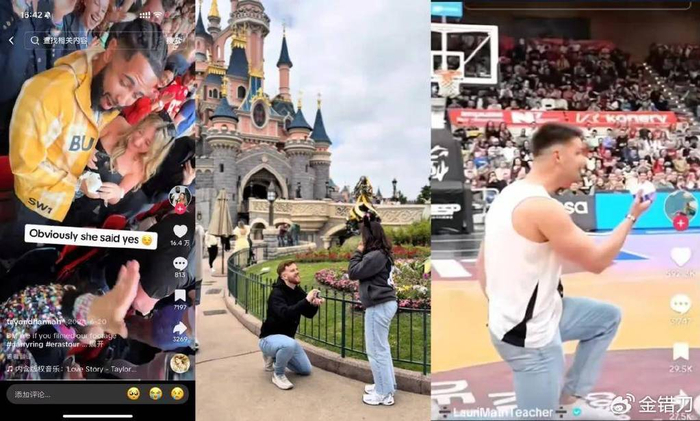 不仅有霉霉演唱会用DR向女友求婚的,还有球员在NBA赛场上用DR求婚、美国年轻人在迪士尼用DR求婚,更有网友评价说:似乎现在在迪士尼求婚没有DR都算是低配的浪漫了。