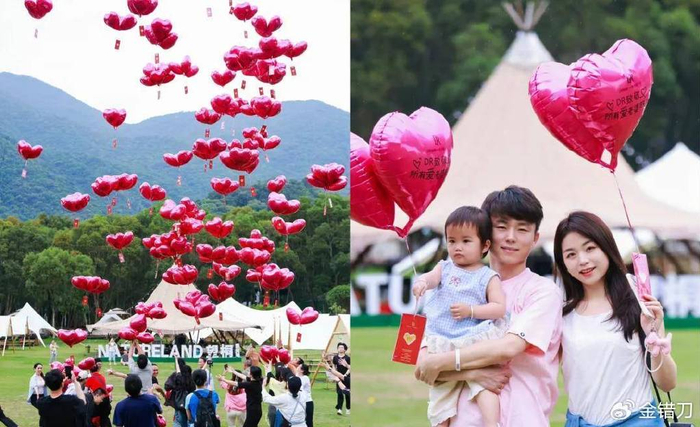这是一场520“DR致敬所有爱老婆的人”的品牌艺术行为,在深圳、成都、重庆等地的街头,无数DR的粉色气球被放飞空中,每个气球下面,都绑着一封装载了DR黄金的情书。