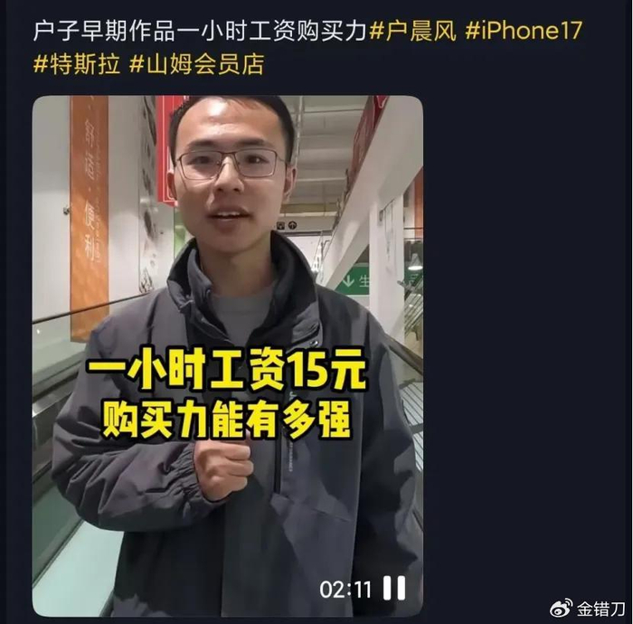 最初搭上短视频的东风时,户晨风的视频里充满了草根人物的底层关怀视角。他早期的爆款直击现实,主题包括“百元购买力挑战”“基层养老实录”“城乡养老金对比”等,赢得了不少好感。有网友评论:“终于有人为我爸妈说话了。”