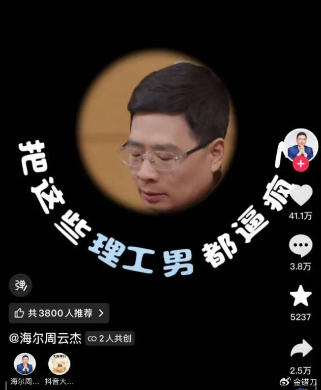 沿袭雷军的爆火思路,在海尔官方一套丝滑小连招后,周云杰谦虚、接地气的“理工男”人设站得相当稳。