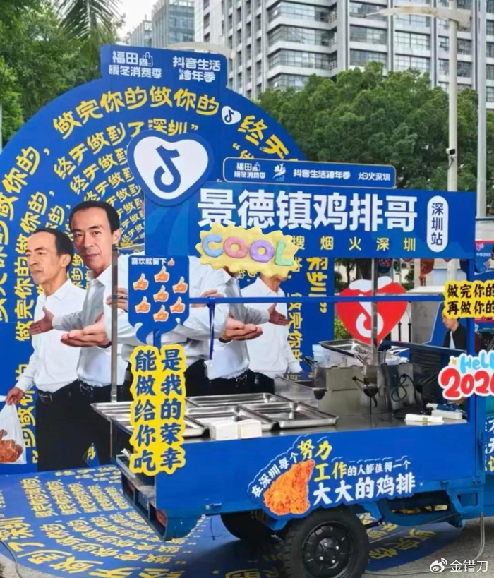 如今,鸡排哥把自己变成了景德镇文旅的招牌IP,开启全国巡炸,从南京到成都,从南昌到宜昌,让全国老百姓一直记得景德镇鸡排哥。