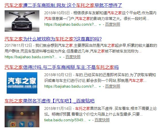 几年前,百度一款车型的资料,汽车之家的页面排名往往是最靠前的,但现在,很多搜索很多车型,可能在百度前两页都看不到汽车之家的链接了。