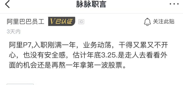 一方面阿里激励制度给力,有些人为了获得更好的绩效和晋升机会拼命加班。另一方面有些人为了保住工作和股票,加班加点,以求自保。剧场效应造成了加班成风,但安全感并没有增加。