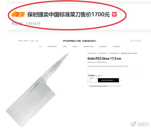 豪车品牌保时捷推出了中式菜刀,设计师专门介绍到:“东方厨房不可或缺,来自中国的标准”。