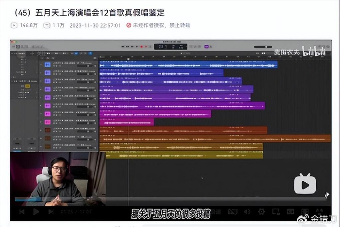 一位Up主“麦田农夫”就用技术手段在视频中列举了各种五月天假唱的“实锤”。
