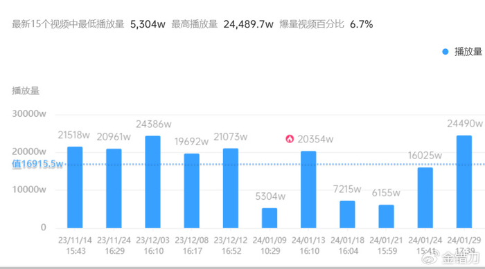 一条视频,顶别人一年的播放。