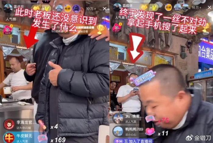 靠环球旅行爆火的蓝战非,最近回国直奔新疆,狂炫新疆美食。用餐时,线上直播间人数突破10w,线下也不断有人提出合影需求,直接看懵饭店老板,当场搜索蓝战非是何方神圣,随后默默加入队伍等着合照。