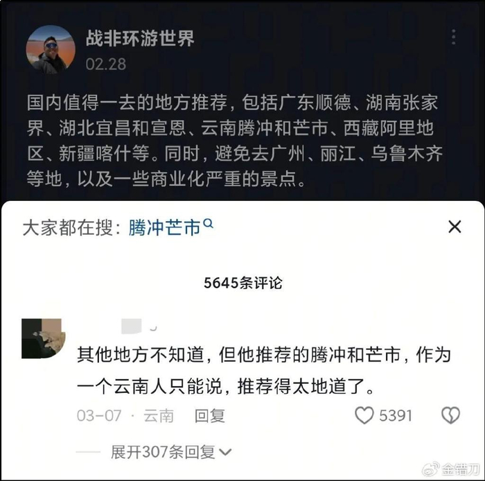 因为真实的深度游,他的意见开始被当成旅游攻略,身份从游戏主播变成权威的旅行博主。