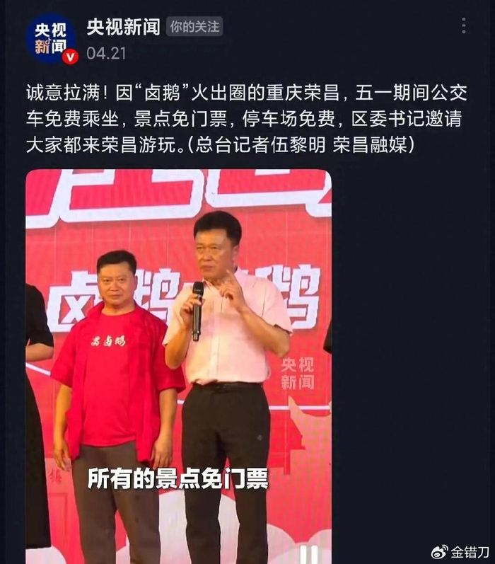之前坚持投喂甲亢哥的重庆荣昌“卤鹅哥”,成功捧火家乡。现在当地做了各种准备,迎接可预见的汹涌人流。