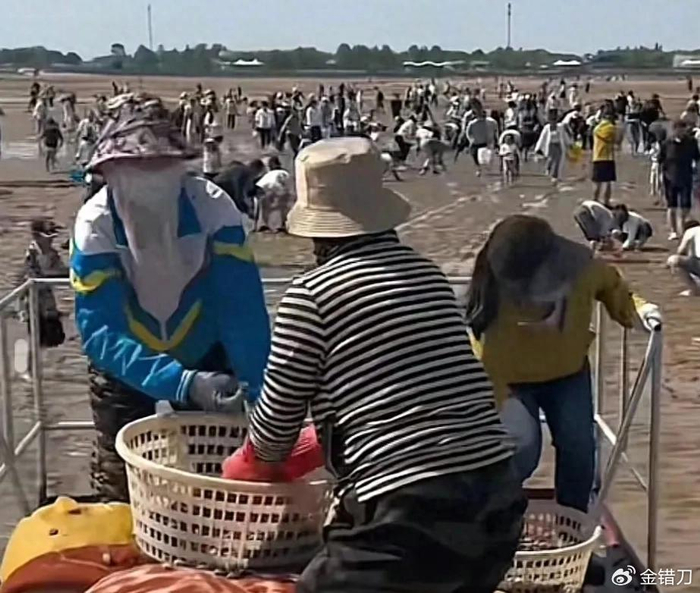 山东一景区怕游客赶不到海,直接日撒3000斤蛤蜊。