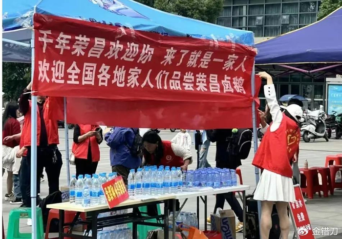 有游客去荣昌打卡,起初体验和很多出圈的小城一样,出了荣昌高铁站,可以免费领矿泉水,志愿者会免费指路,额外还送一份旅游打卡攻略。