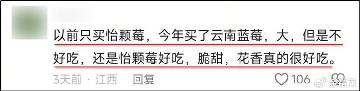 今年蓝莓供给增加打下价格,有的人就说:“今年买到的云南蓝莓,没有往年买的怡颗莓好吃。”
