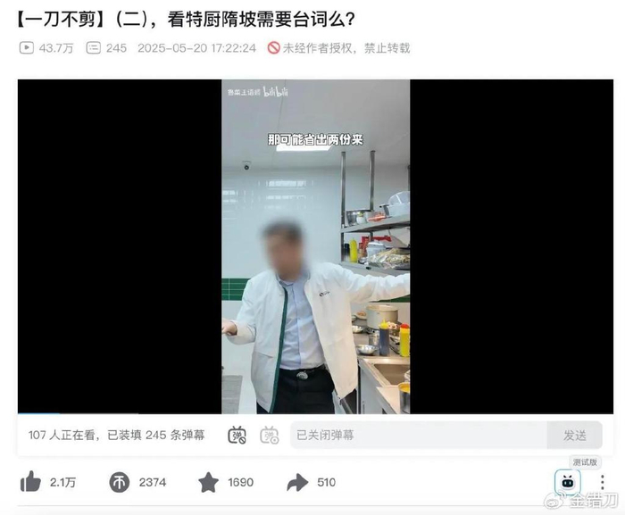但在小李和隋坡的同行们后续放出的花絮中表明,节目中不少有干货和分量的金句,其实都是隋坡依靠多年的厨师功底自己念出来的。