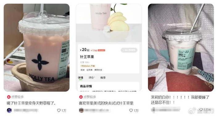 苹果并不稀罕,在茉莉奶白捧红了“针王苹果”后,包括奈雪等前辈品牌也陆续推出了各自的苹果口味单品。