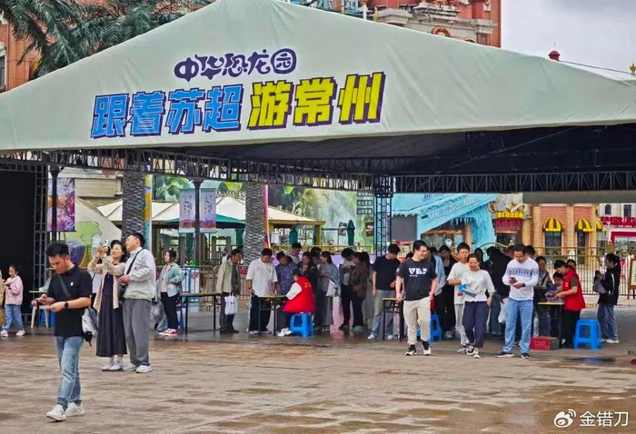 苏超期间常州哪儿都有恐龙:赛场上恐龙战队助威,景区里、大街上甚至地铁站里都有恐龙。