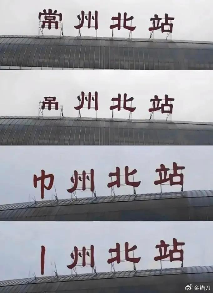 2017年某个雨夜,常州北站“常”字痛失“龸”字头,晚上仅“吊”字可见,有网友拍下后,“吊州北站”的照片在网上疯传。