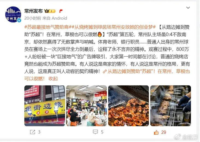 最后一场对战南京,五连败被摸头杀;常州最接地气的赞助商——东北路边烧烤爆火,常州被全网怒赞“最有契约精神”的城市。
