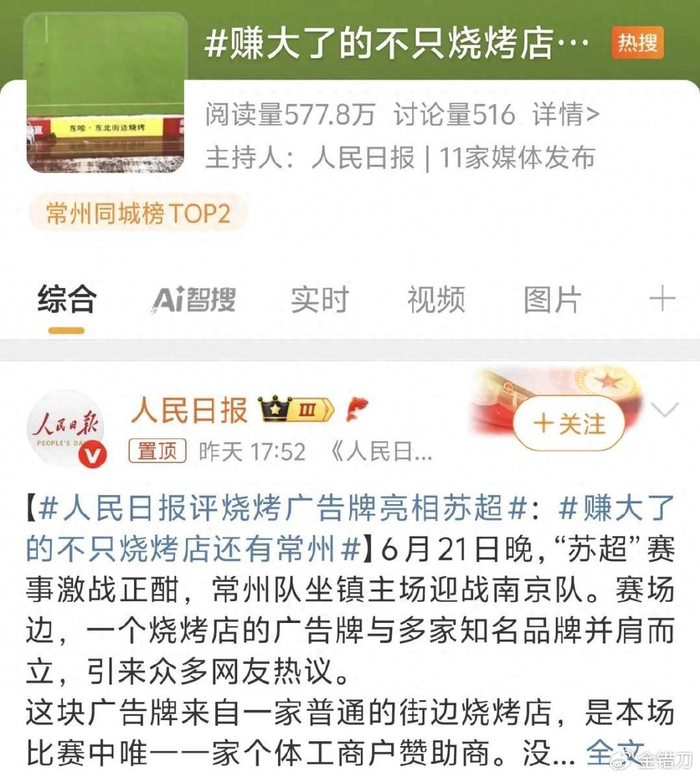 昨天,常州被《人民日报》官方认证为最大赢家:比赛一球没进,热搜一次不缺。