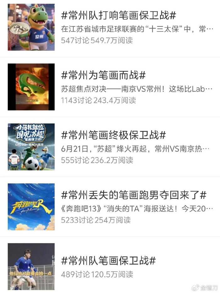除了 “笔画保卫战”,常州还根据不同的对手,创造出了一系列独具特色的梗。