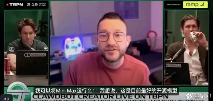 原本取名Clawdbot是为了致敬,没想到热脸贴了冷屁股。因为这事,之前对Claude赞不绝口的Peter转变了口风,公开夸赞中国的MiniMax M2.1才是当下最优秀的开源模型。