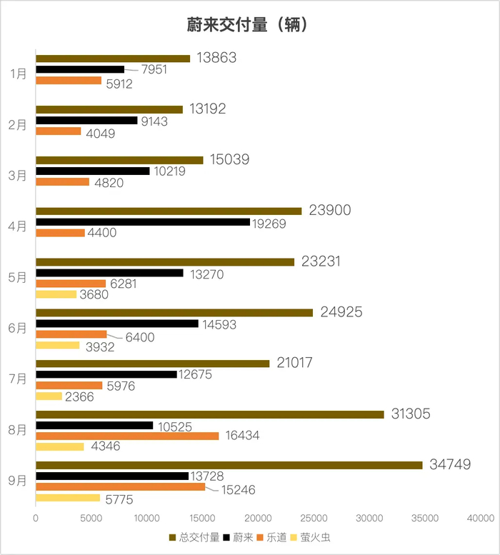 多品牌的布局让蔚来转型为一个覆盖10万至40万元以上全价格带的汽车集团,乐道和萤火虫两个子品牌共同贡献了蔚来9月总销量的六成,成为绝对的增长主力。