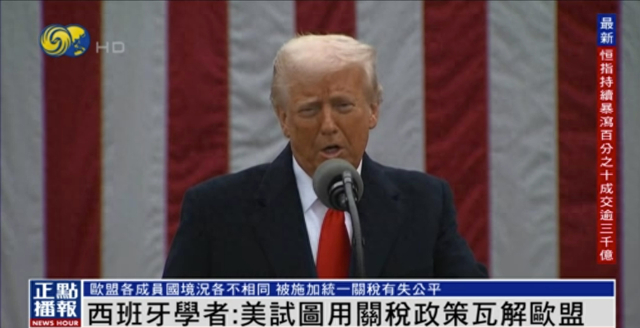 针对美国对欧盟征收20%的统一关税,有西班牙学者认为,欧盟各国境况各不相同,这种做法有失公平,但不排除这是美国试图瓦解欧盟的策略之一。